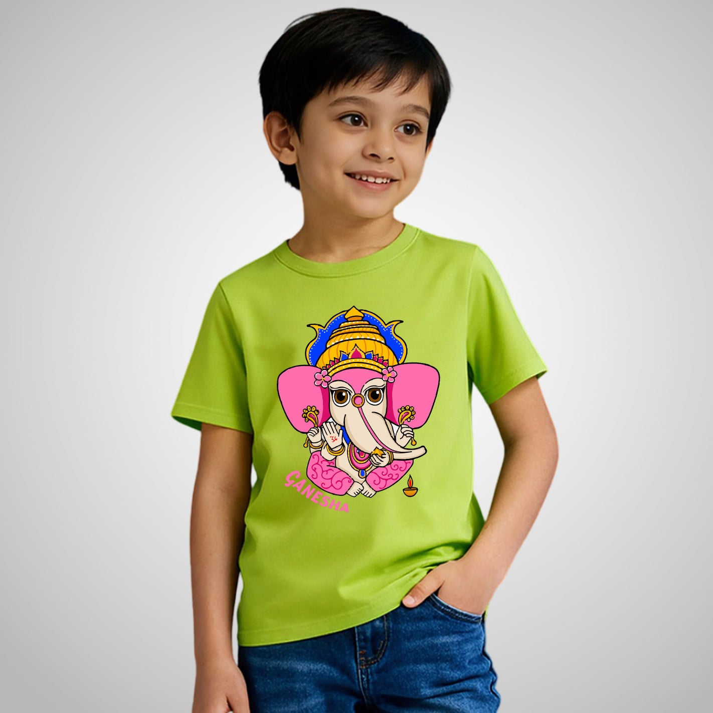 The Love You Ganesha Kids T-Shirt by WYO brings smiles and blessings together in a fun, playful design. Inspired by Lord Ganesha’s lovable charm, it spreads love, positivity, and joy. Crafted from soft, breathable fabric, it keeps little ones comfortable all day while adding a cute devotional touch to their everyday look.