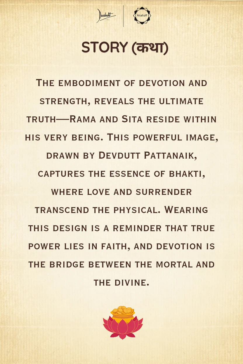 Showcase ultimate devotion and strength with this powerful oversized T-shirt inspired by Veer Hanuman, the symbol of unwavering bhakti and courage. The artwork beautifully depicts Hanuman ji revealing Shri Ram and Sita in his heart, representing pure devotion and divine loyalty.